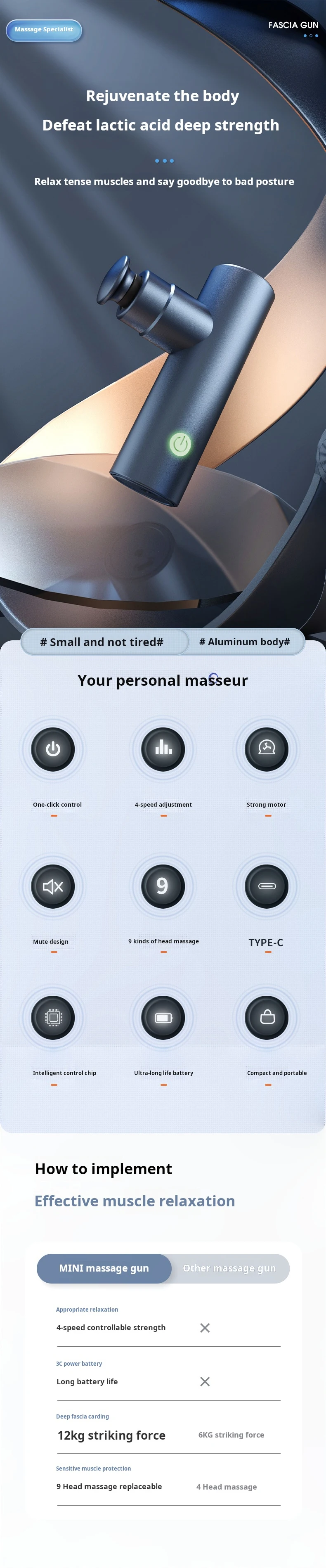 Mini Deep Tissue Massage Gun — 8 Heads